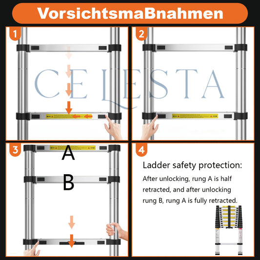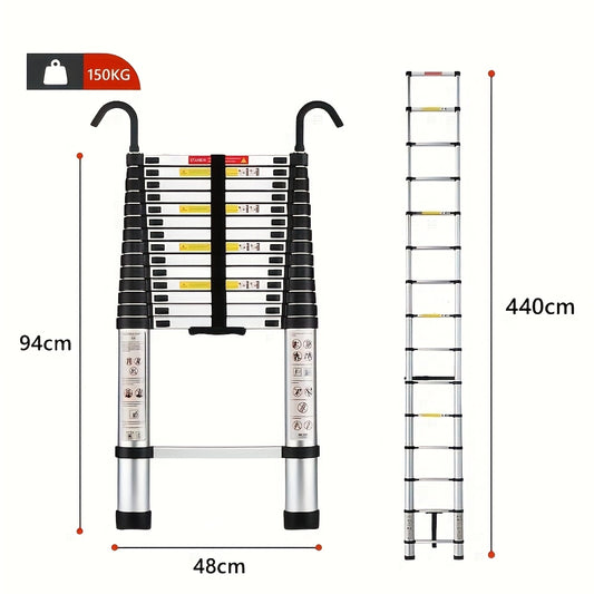150kg Stainless Steel Ladder, 5m 4.4m 3.8m 3.2m 2.6m Telescopic Folding Ladder, Portable Safety Ladder, Suitable for Renovation And Maintenance, Garden Pruning, Orchard Picking, Warehouse Stocking, Ladder for Home, A Shape Ad