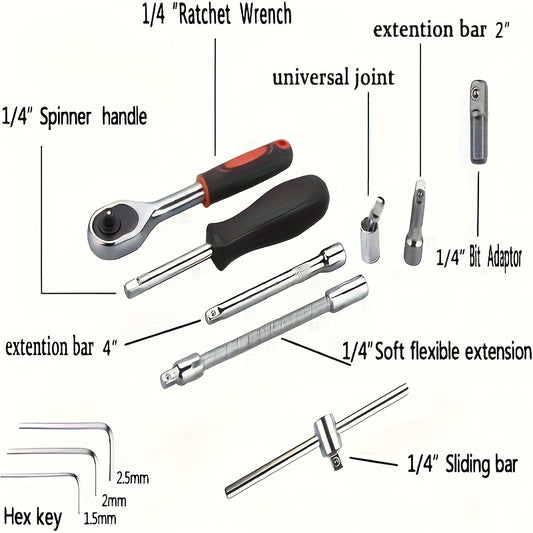 150/46pcs Auto Mechanical Repair Tool Set, Multifunctional with Socket, Wrench and Ratchet Set, Durable Metal Structure Tool Box with Storage Box, No Electricity Required
