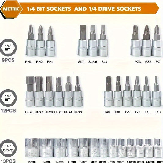 150pcs/46pcs Chrome Vanadium Steel Socket Wrench Set - Durable Torx Bit Kit for Auto & Home Repair, Includes Advanced Storage Case, No Assembly Required, Uncharged, Without Battery