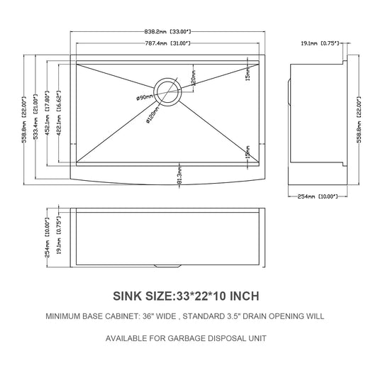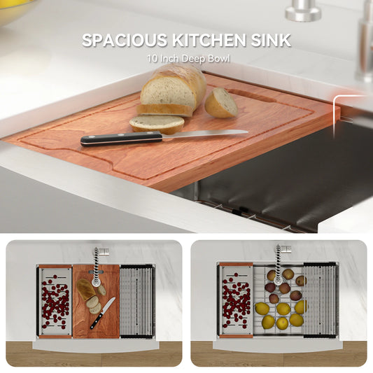 16 Gauge 33-Inch Brushed Stainless Steel Apron-Front Farmhouse Kitchen Sink with Workstation for Kitchens