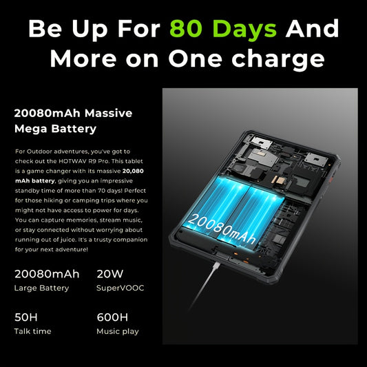 HOTWAV R9 Pro 11inch 2K FHD+Display Tablet, Android 14, 20080mAh 20GB (6GB+14GB Expandable)+256GB (2TB TF) Outdoor Tablet, 64MP Rear Main Camera, 16MP Front Camera, Octa-core/Dual SIM 4G, IP6X & IPX8 High Quality Tablet, Dual