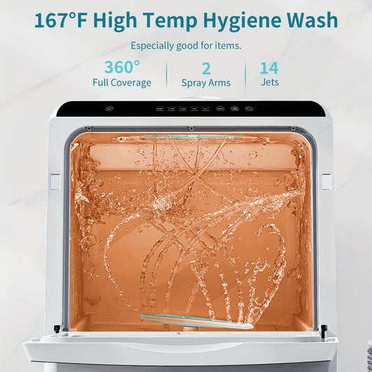 Independent Countertop Dishwasher, 5+1 Wash Programs, Built-in 5L Water Tank, Two Water Supply Modes, With Hot Air Drying And Automatic Ventilation Functions, Suitable For Homes, Apartments, And RVs.