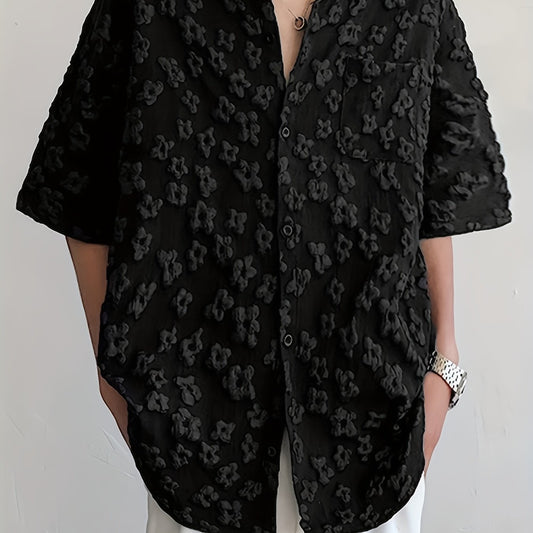 INCERUN Men's Bohemian Floral Print Casual Shirt - Loose Fit, Button-Down, Polyester Blend, Machine Washable