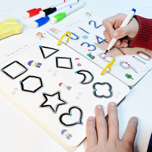 Kids' Reusable Magic Practice Workbook Set with Interactive Writing Activities - -Style Number & Letter Tracing Exercises, Color-Coding Games, ABCs & 123s Learning Book with Answer Key for Homeschool,, Classroom - Durable & E