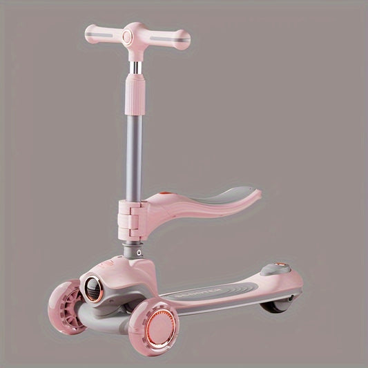 Kids Scooter with Foldable Seat & 2-in-1 Sit & Stand Modes, 5-Level Adjustable Handlebar, Pink with LED Lights & Music, 2-Wheel Stability, Front Brakes & Rear Suspension, Heavy-Duty Construction for Boys & Girls 3-12 Years (B
