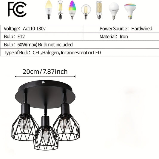Kitchen lighting fixtures are ceiling mounted, with a three way rotating black iron lampshade, suitable for use in kitchen farmhouses, restaurants, porches, corridors, etc. ( excluding E14 bulbs)