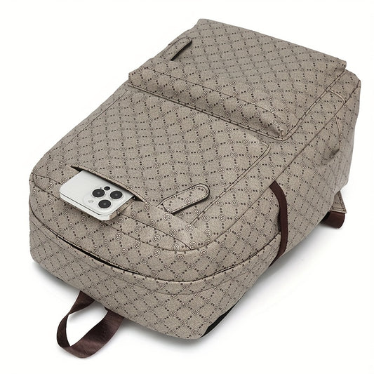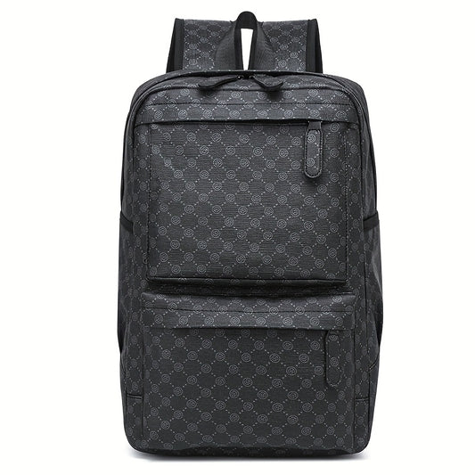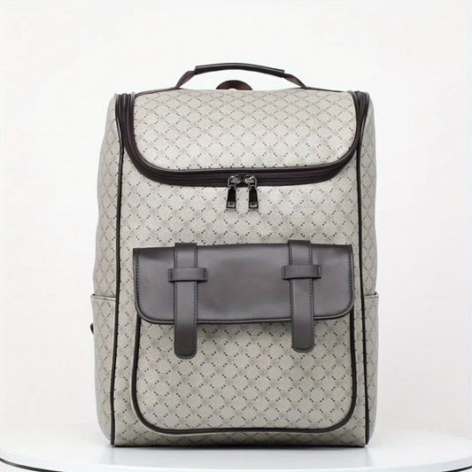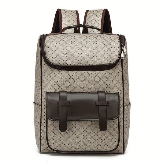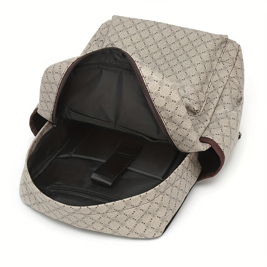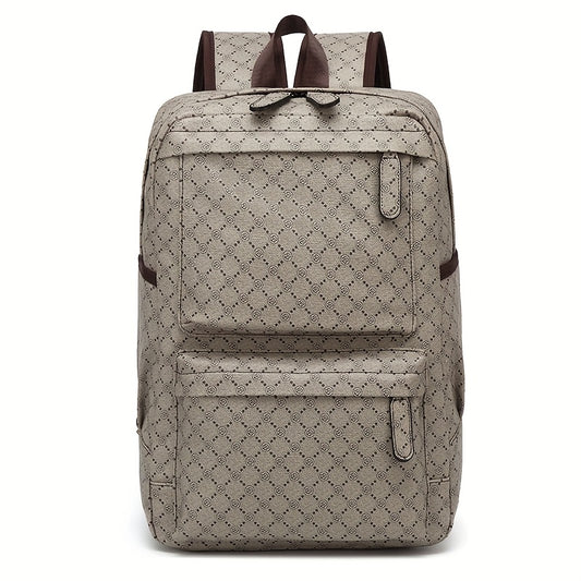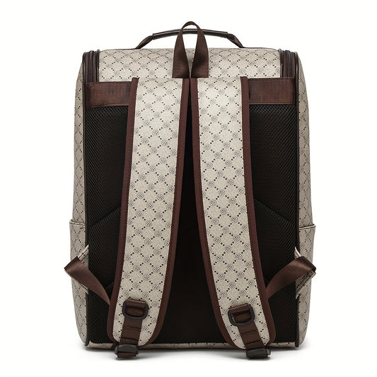 LUMG Men'S Casual Large Capacity Laptop Backpack - Brown & Beige Check Pattern, Durable, Multiple Compartments with Zipper Pockets, Ideal for Commuting, Travel, and Everyday Use, Everyday Backpack|Casual Style Backpack|Functi