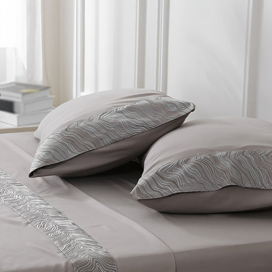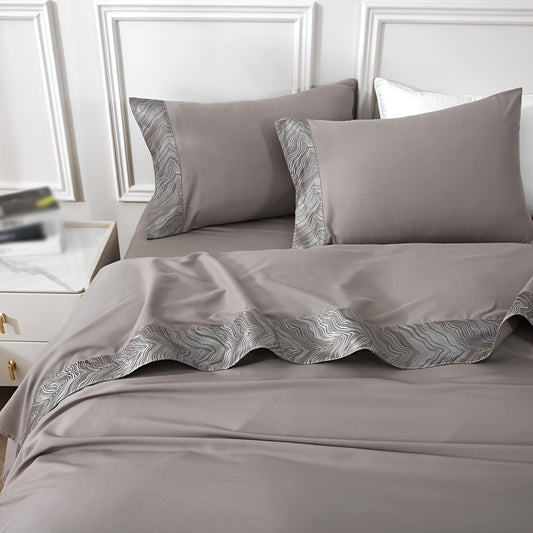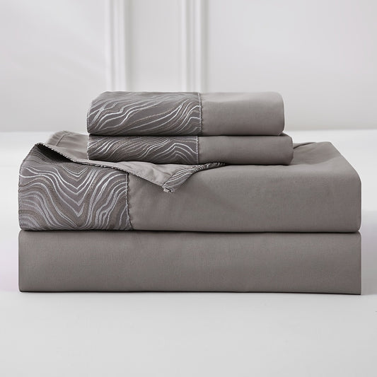 Luxury jacquard Bed Sheets Set 40.64cm deep pocket - 4pcs Bedding - Shrinkage and Fade Resistant - Easy Care 1flat+1fitted+1/2pillowcase