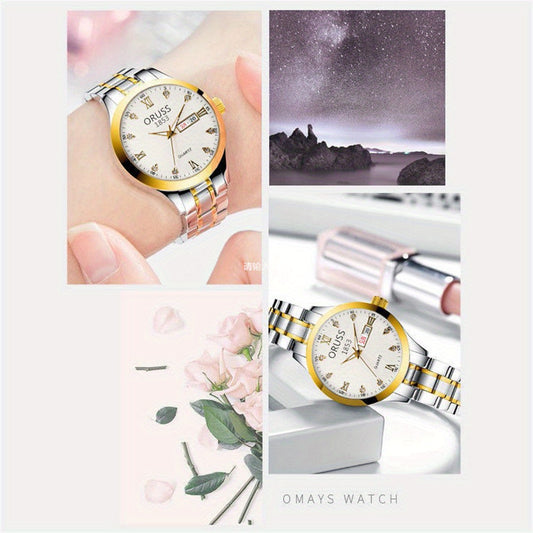 Luxury Rhinestone Decor Quartz Watch Waterproof Calendar Luminous Analog Wristwatch For Daily Life Business Travel Vacation Date Watch