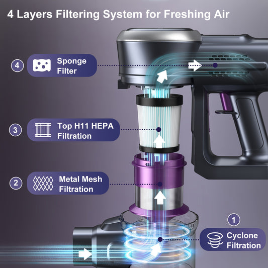 Lubluelu 46000PA Stick Vacuum Cleaner With Self-Empty Station Base, Cordless Vacuum Cleaner With Anti-Tangle Brush And Upgraded Green Light, Wireless Vacuum For Home Pet Hair, Carpet, Hard Floor - X1000