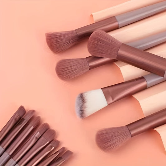 Luxurious 13pcs Makeup Brush Set With Soft Synthetic Bristles - Includes Travel Pouch, Fragrance-Free For All Skin Types