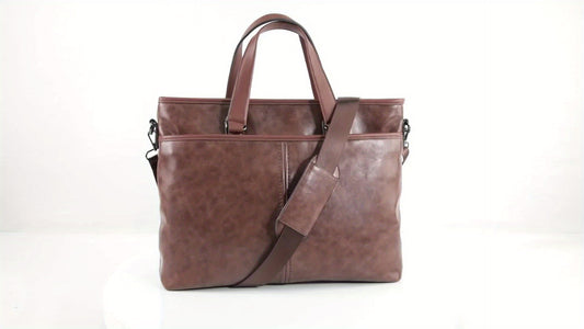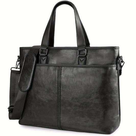 LUBARDY Men'S Business Handbag, Large Capacity B4 Two-way Synthetic Faux Leather Office Travel Commute Bag, Zipper Closure, Detachable Shoulder Strap, Polyester Lined, No Printing - Black/Brown, Navy Blue, Daily Commute Bag |