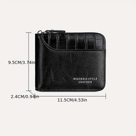 Luxury PU Leather Men's Wallet with RFID Blocking Technology, Zipper Closure & Multi-Compartment Design - Brown/Tan Crocodile Texture, Golden-Tone Hardware, Coin Pocket & Card Holder - Elegant Gift for Men, Durable Everyday W