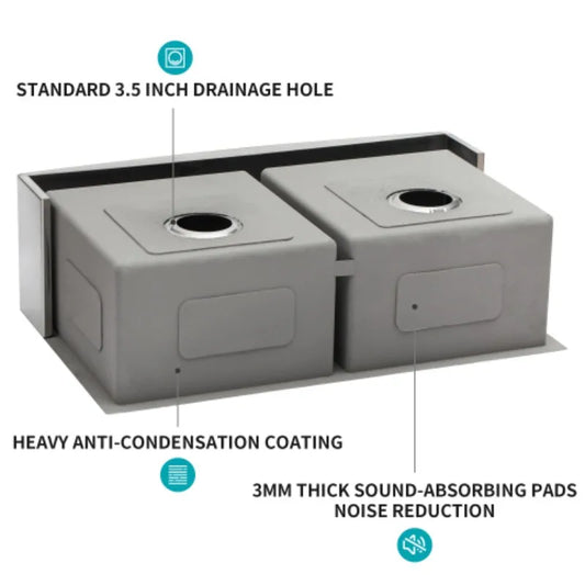 Luxury 33"x21"x10" 304 Stainless Steel Double Bowl Farmhouse Kitchen 10\" Deep Basin Waterfall Supplier Standing Single Bowl