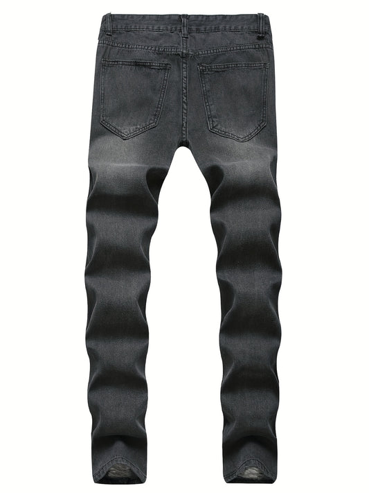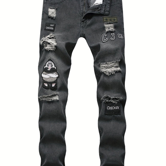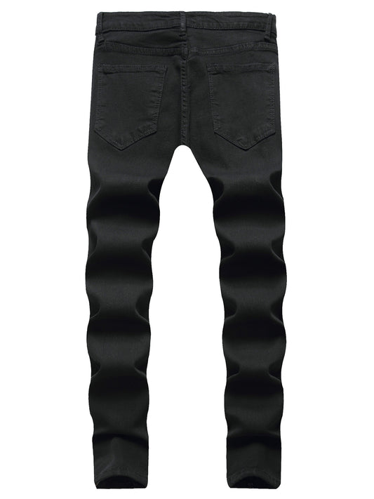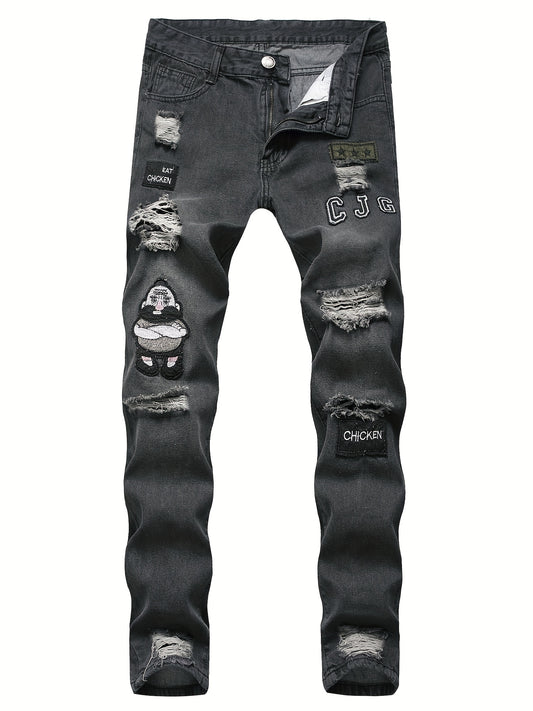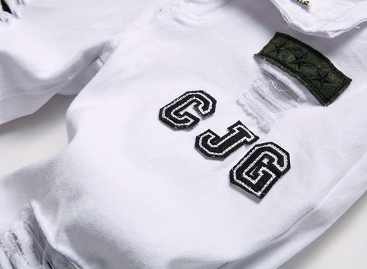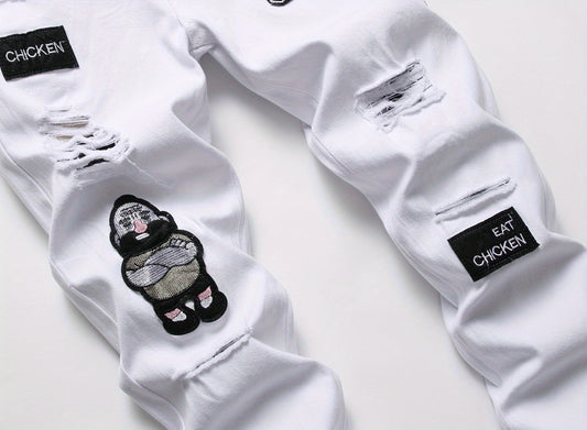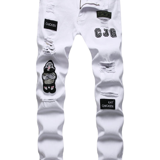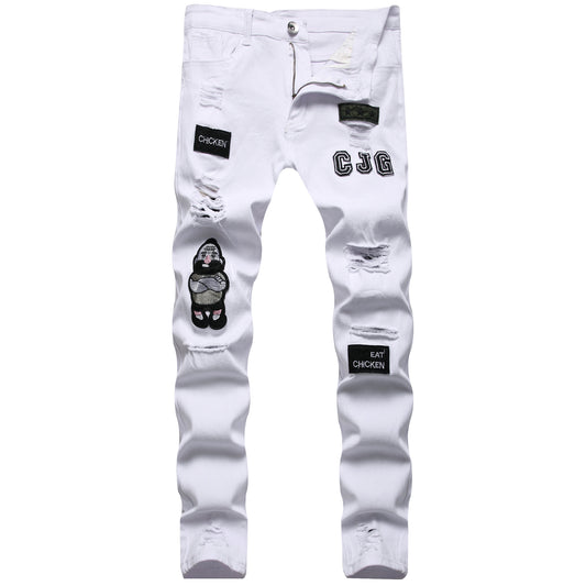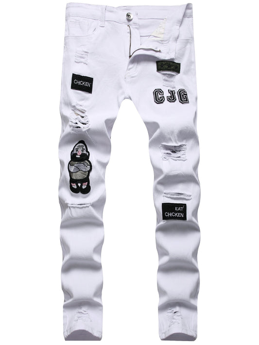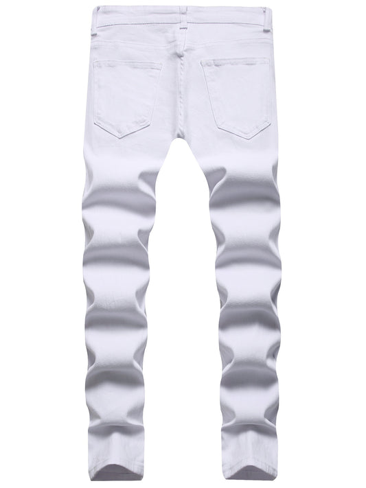 Men Fashion White Ripped Distressed Destroyed Washed Denim Jeans Ripped Slim Fit Wild Jeans White Denim Pants