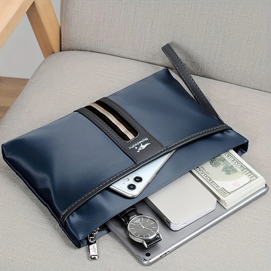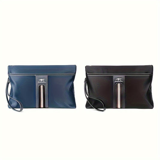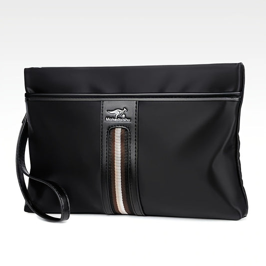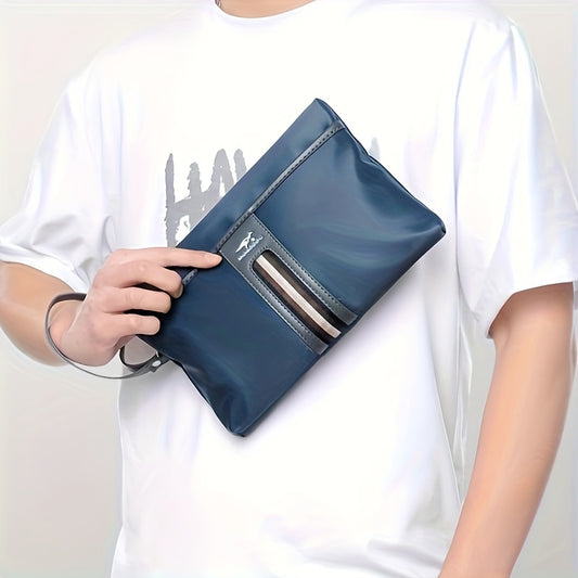 MARHSEIKE Men's Large Capacity Clutch Bag - Stylish Black Nylon Handbag with Zippered Compartment & Adjustable Strap, Trendy Business Phone Holder for Everyday Use, Secure Travel Pouch|Modern Masculine Clutch|Durable Zipper C
