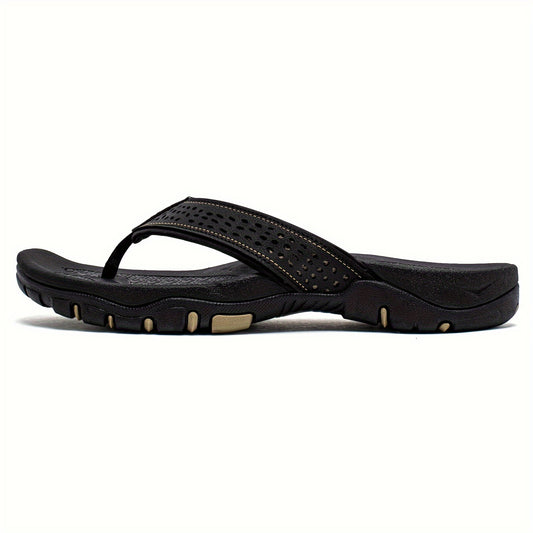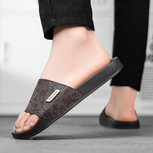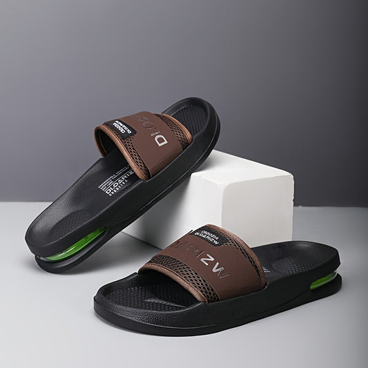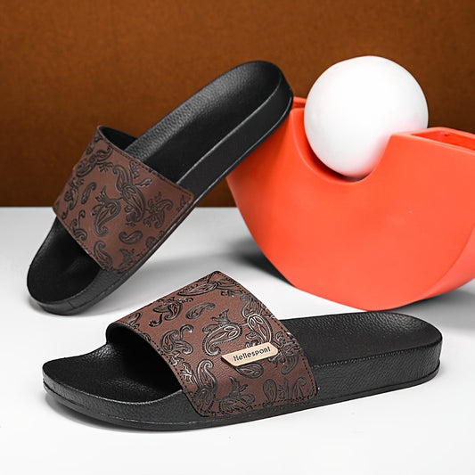 Men's Breathable Slip-On Sandals - Comfortable Non-Slip Beach Slippers with TPR Sole & EVA Cushion, Textured Traction Design, Durable PU Upper, Brown/Orange Accents - Extended Sizes Available, Summer Footwear | Stylish Comfor