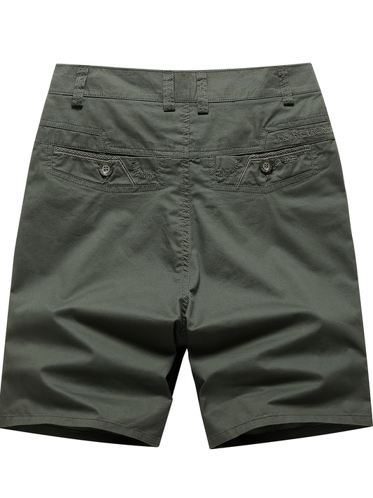 Men'S Cargo Shorts - Olive Green Non-Stretch Work Pants with Multiple Utility Pockets, Straight-Leg Mid-Thigh Length for Everyday & Professional Use - Durable Casual Outdoor Pants for Construction, Hiking, Travel - Non-Stretc