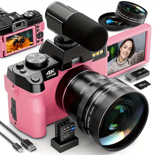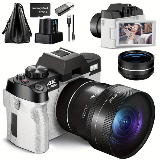 NBD 48MP Digital Cameras for Photography with WiFi & App Control, 4K Autofocus Vlogging Camera for YouTube with 16X Zoom, Anti-Shake, 32GB TF Card, Dual Batteries, 52mm Wide Angle & Macro Lens