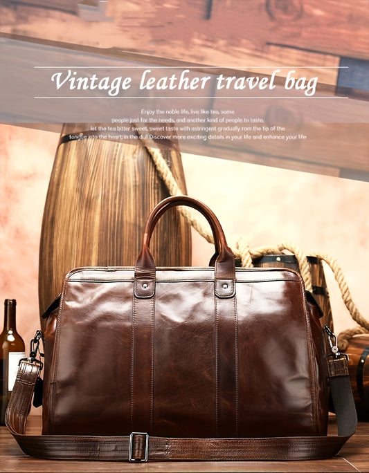 NIUCUNZH Men's First Layer Cowhide Leather Travel Duffel Bag - Large Capacity Carry-On with Adjustable Straps, Multiple Compartments & Reinforced Handles, Sleek Black for Weekend Trips, Daily Commute & Casual Travel, Travel B