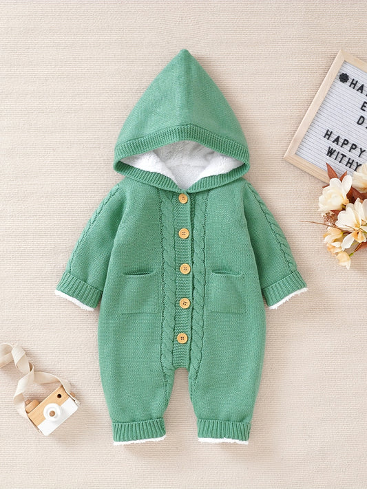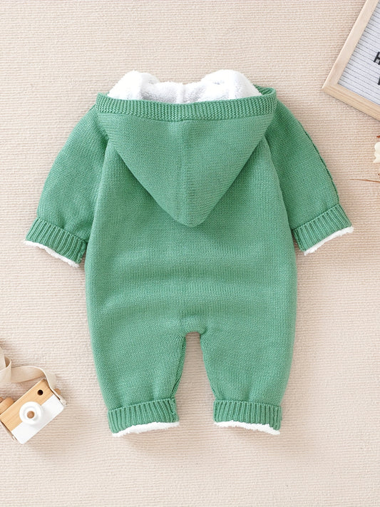 Newborn Boys And Girls Knitted Jumpsuit With Long Sleeve Hooded Pants Jumpsuit