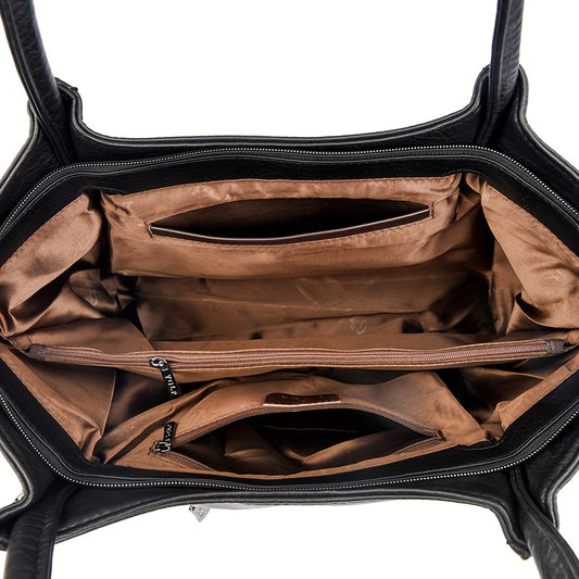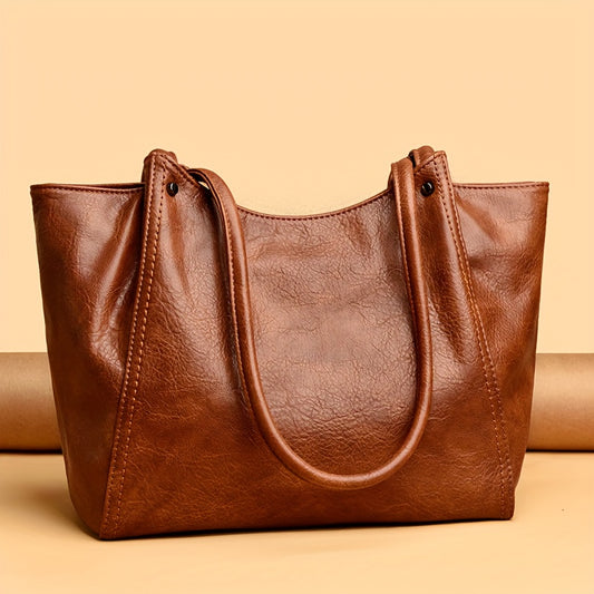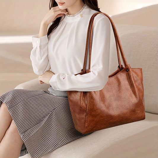 OGEHUAFEE Women'S Vintage Tote Bag - Large Capacity Synthetic Shoulder Bag with Zipper Closure, Fixed Strap & Nylon Lining, Retro Minimalist Design for Commuting, Travel, Shopping, Dates (Coffee Brown, Light Brown, Dark Brown