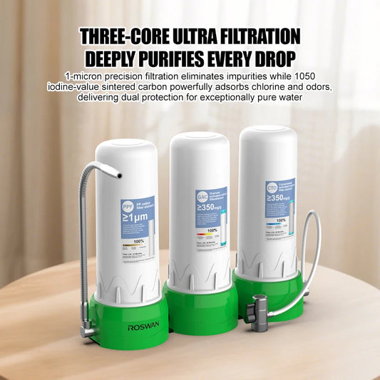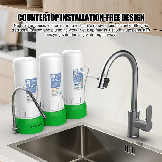 OEM 10-Inch 3-Stage Manual Countertop Water Purifier Triple Filter System Household Car Sink Manual Water Filter No Plumbing