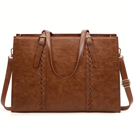 NUBILY Laptop Bag for Women 39.62 cm PU Leather Computer Work Bags Large Laptop Tote Bag Professional Business Office Briefcase Women Lightweight Shoulder Handbags, Brown