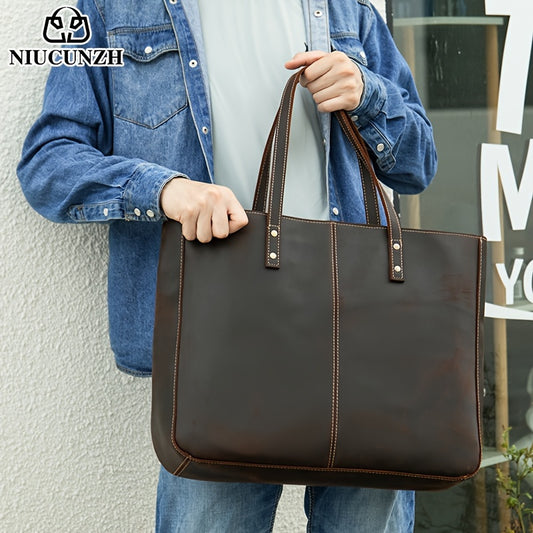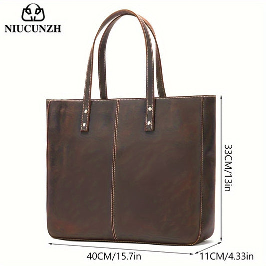 NIUCUNZH Men's Vintage Genuine Leather Tote Bag, Top Layer Cowhide, Large Capacity Shoulder Bag for Going Out, Briefcase Style Handbag, Maintenance Free