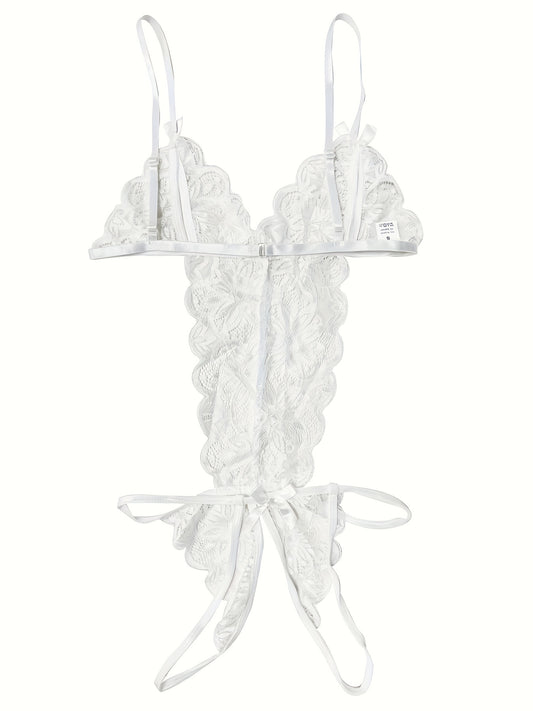 one-piece Seductive Black Lace Teddy with Plunging Cut-Outs and Thong Back - Women's Lingerie for a Sensual Look