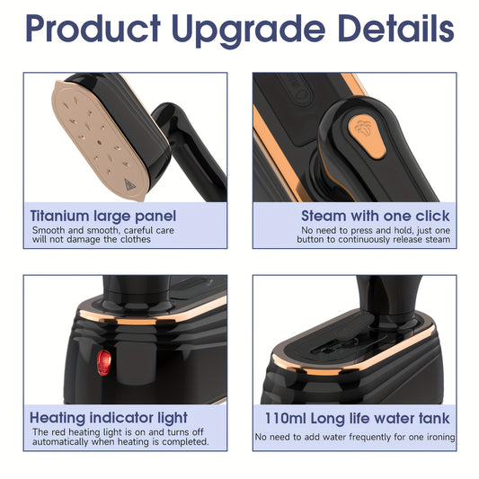 PANCERKA 1pc Handheld Garment Steamer Iron for Clothes, 1200W 2-in-1 Ironing & Steaming, Large Soleplate, Fabric Wrinkle Remover for Home and Travel (EU Plug), Travel Clothing Steamer, Sleek Iron Design, Durable Iron Construc