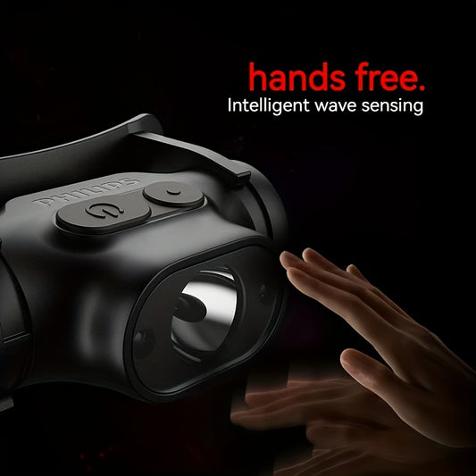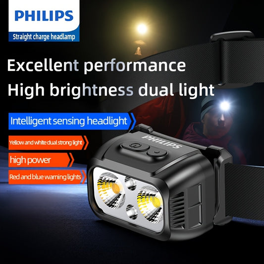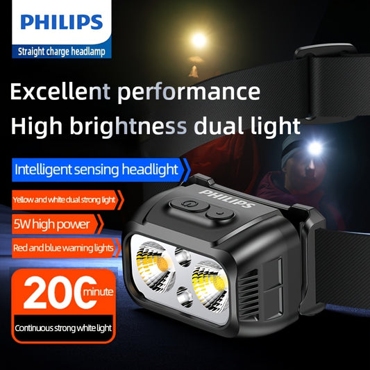 Philips Bright Rechargeable Headlamp: A powerful LED sensor headlight, suitable for emergency lighting and outdoor use. It features intelligent sensing, dual-color switching, an 800mAh lithium battery, and comes with a Type-C