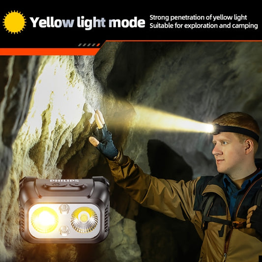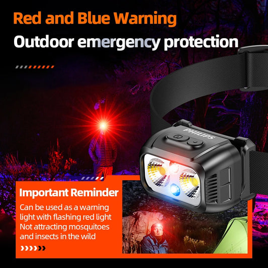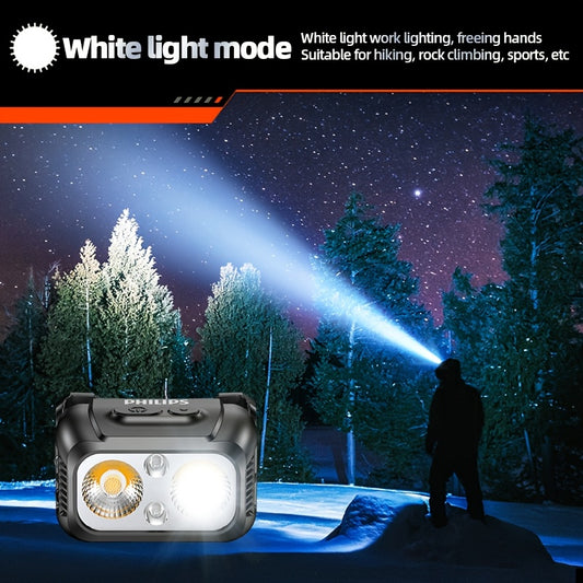 Philips SFL1341 Bright Headlamp with Powerful LED Sensor, Suitable for Outdoor Emergency Lighting, Smart Sensing, Dual-Color Switch, 800mAh Battery and Type-C Charging Cable