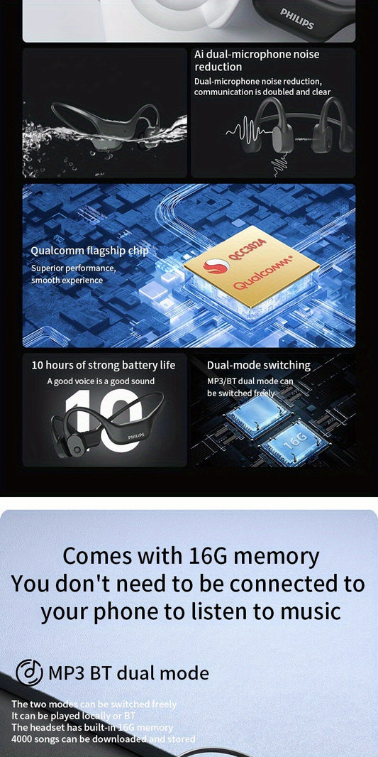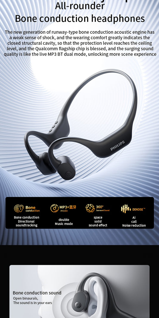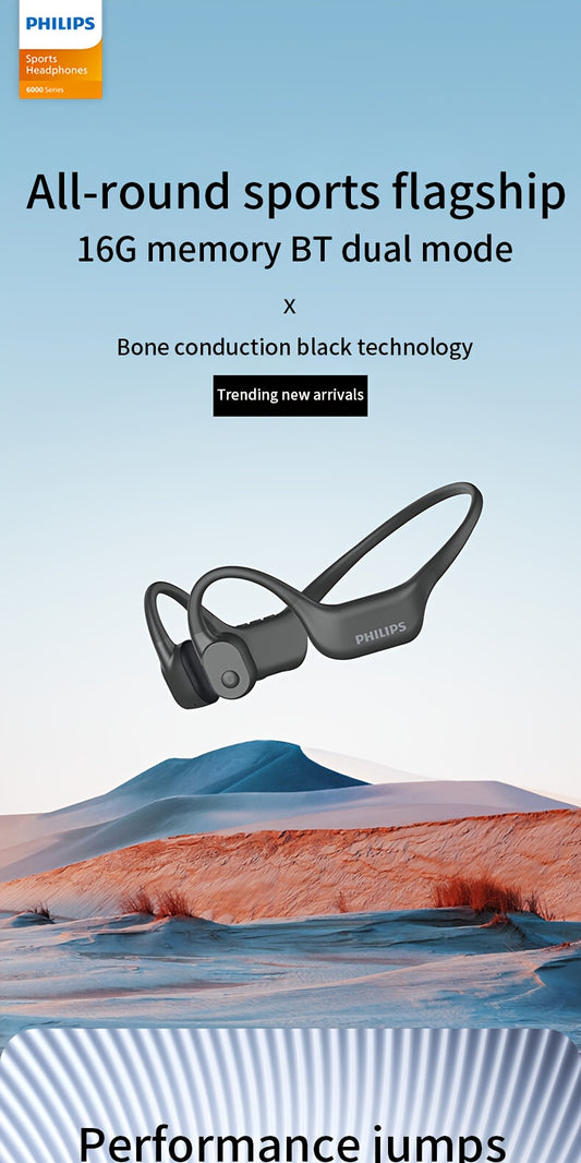 Philips bone conduction TAA6609 wireless headphones, all-round sports running wireless hanging ear open earset, ultra-long battery life, built-in 16G memory and wireless dual-mode convenient download song playback, swimming,