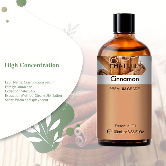 PHATOIL Cinnamon Premium Essential Oils 100Ml/3.38Fl.Oz. Long-Lasting Scent, Great for Aroma Diffusers, Air Purifier, Oil Burners