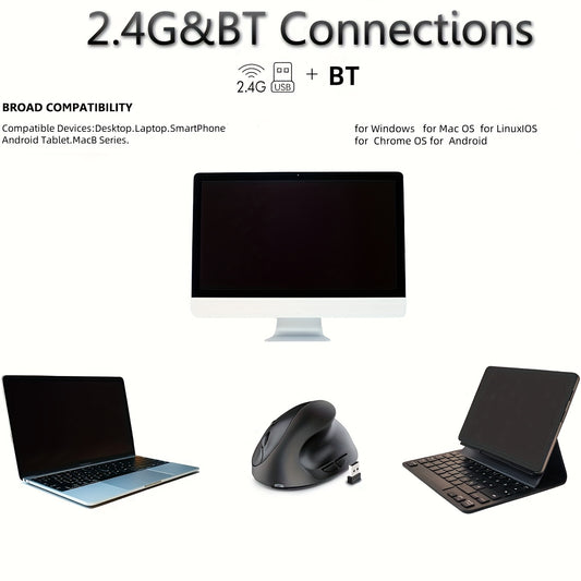 Rato Vertical Ergonómico Sem Fios Dual Mode BT & 2.4GHz