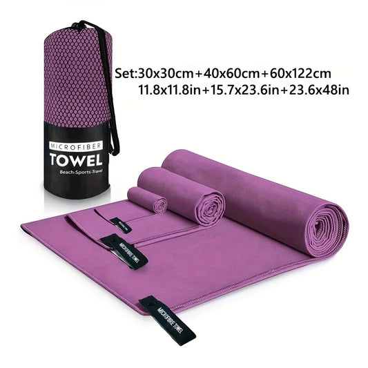 Quick-Dry Towel - 3 No. Lightweight Microfiber Travel Towel Set with Bag, 30x30cm, 40x60cm, 60x122cm - Quick Dry Towel for Camping, Beach, Gym, Backpacking, Golf, Sports Towel, Golf Towel