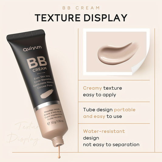 Quiyum BB Cream, Waterproof Long Lasting Pores Concealer, Brighten Skin Tone, Cover Blemishes Make Up Foundation 30g