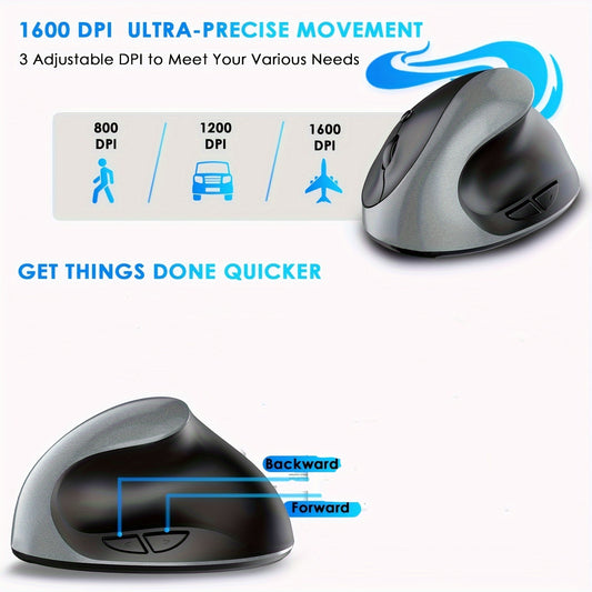 Rato Ergonómico Vertical Sem Fios Recarregável
