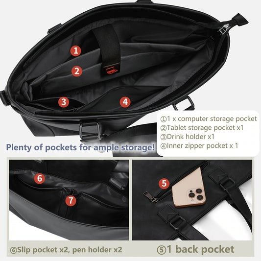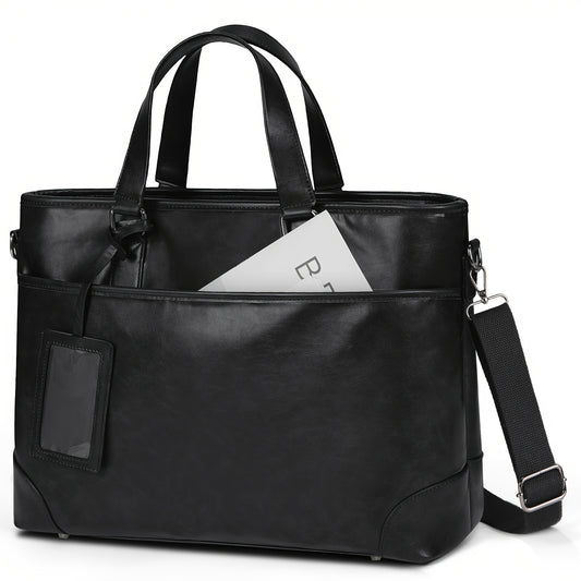 RAINSMORE Men's large-capacity 15.6-inch laptop briefcase Men's PU Leather briefcase shoulder bag commuting business bag