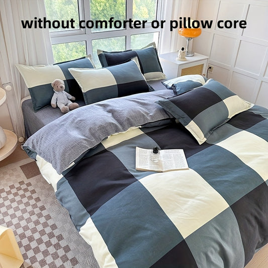 Soft and breathable 4pcs bedding set - Creative space plaid pattern, machine washable - includes sheet, duet and 2 pillowcases for all seasons - ideal for student dormitories, bedrooms and guest rooms
