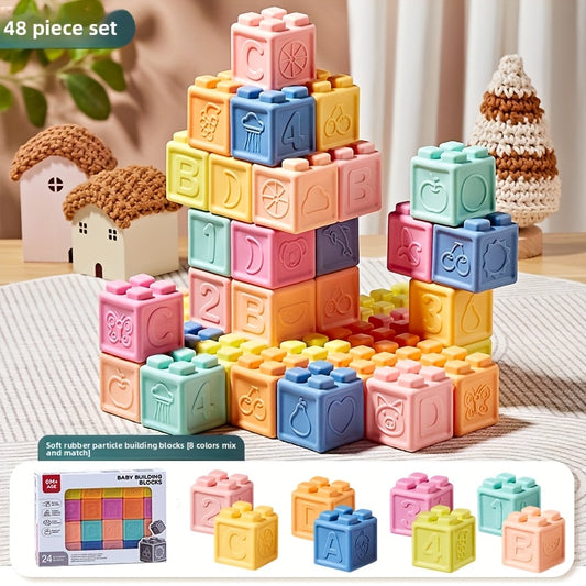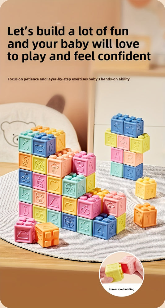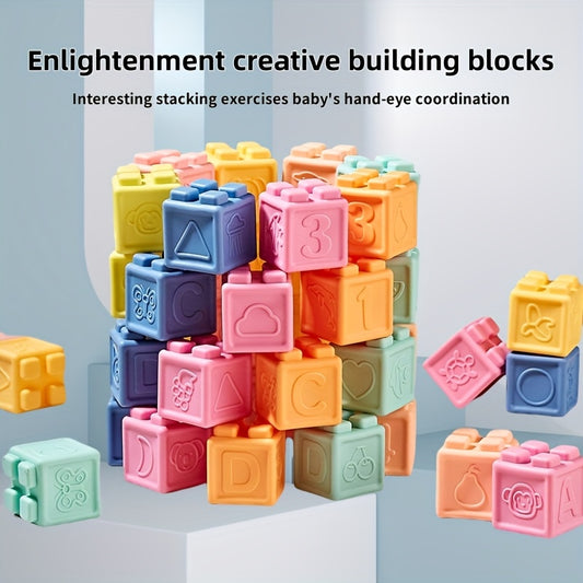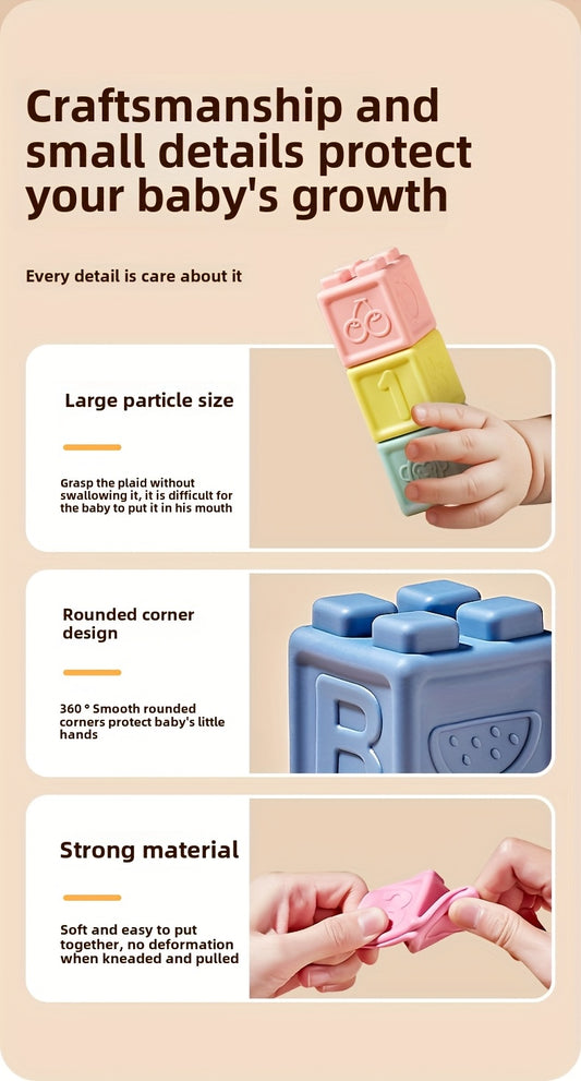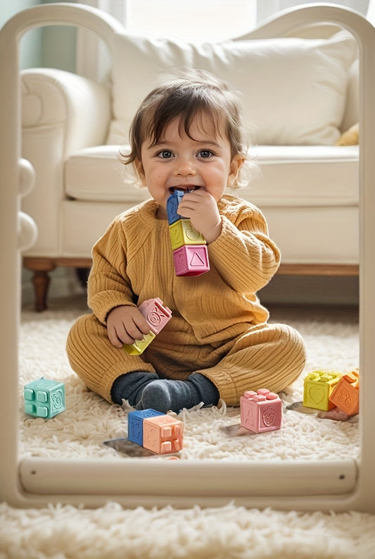 Soft Rubber Building Blocks for Infants - Colorful, Stacking & Nesting Toys for Early Education, Grip Training, and, 0-6 Months, 6-12 Months, 1-2 Years, Hand-Eye Coordination Toy|Colorful Blocks|Soft Texture