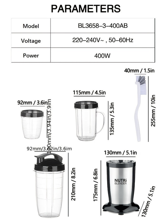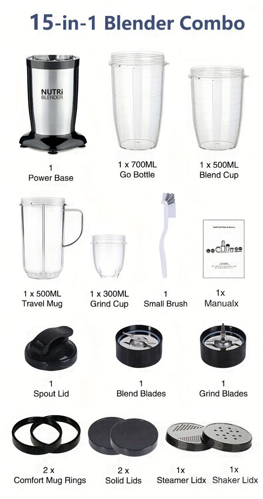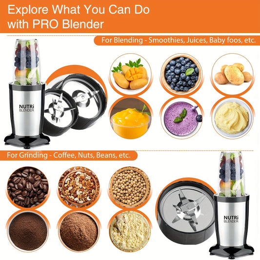 Smoothie Blender, Milkshake And Smoothie Blender, 15pcs Kitchen Personal Blender And Grinder Combo, Single Blender for Making Juice, Baby Food And Nutritional Recipes with Clean Brush