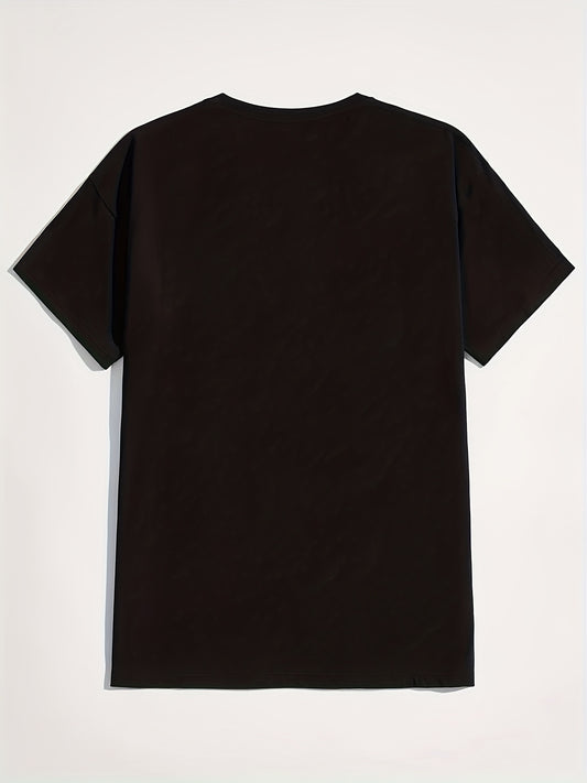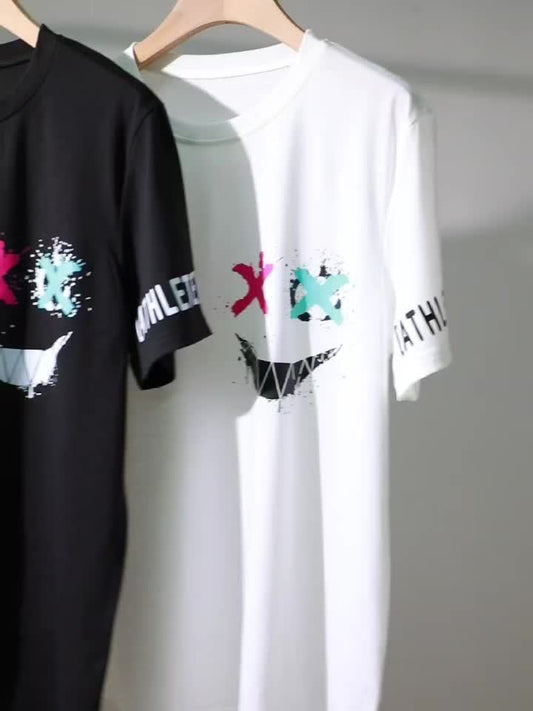 Smile Face Print, Men's Graphic Design Crew Neck T-shirt, Casual Comfy Tees Tshirts For Summer, Men's Clothing Tops For Daily Vacation Resorts