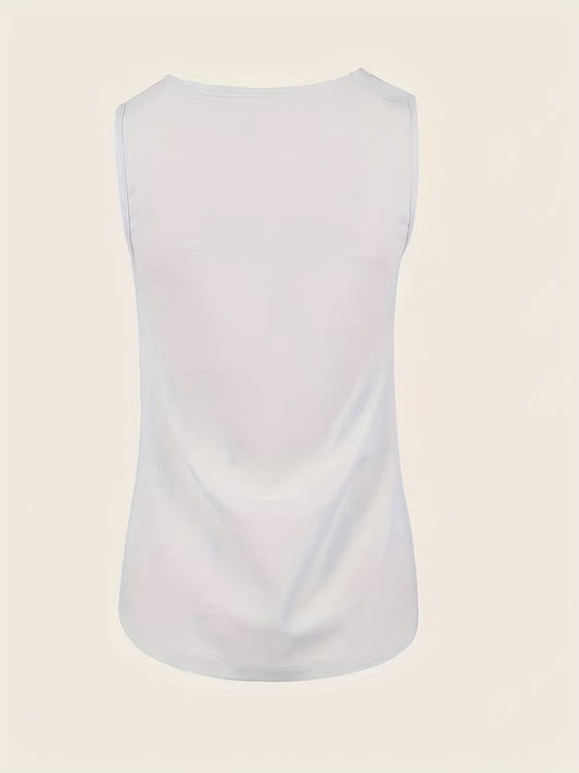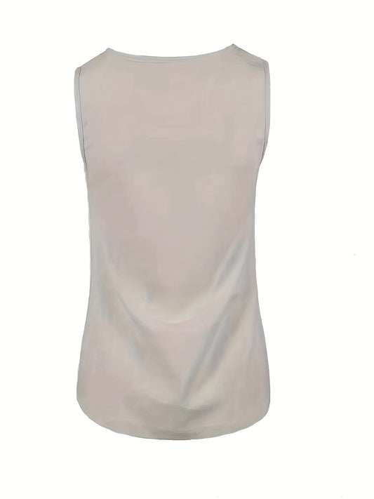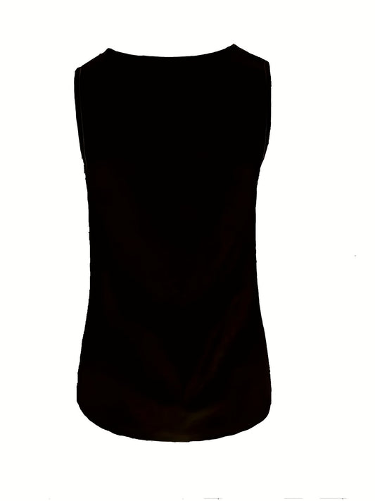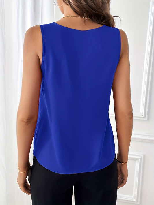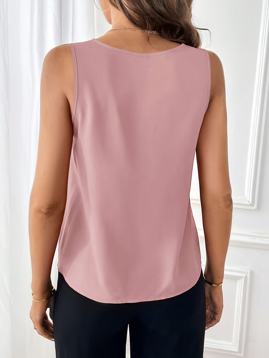 Solid Color V-neck Simple Blouse, Elegant Sleeveless Loose Blouse For Spring & Summer, Women's Clothing