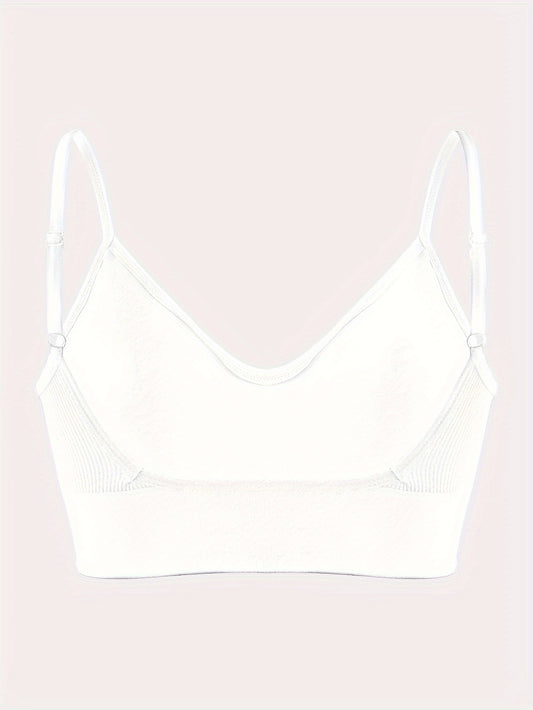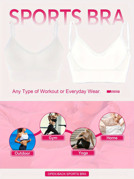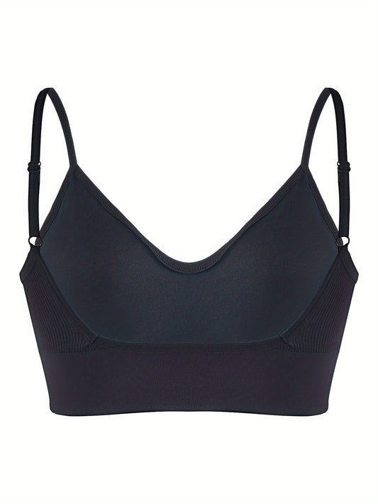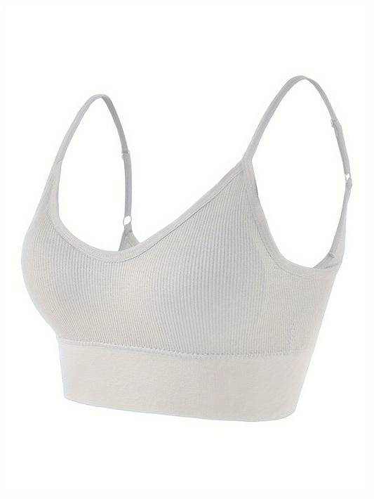 Solid Ribbed Sports Bra, Comfy & Breathable Workout Fitness Intimates Bra, Women's Lingerie & Underwear