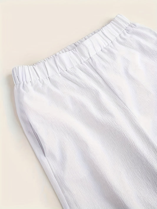 Solid Two-piece Set, Elegant Button Front Shirt & Drawstring Shorts Outfits, Women's Clothing
