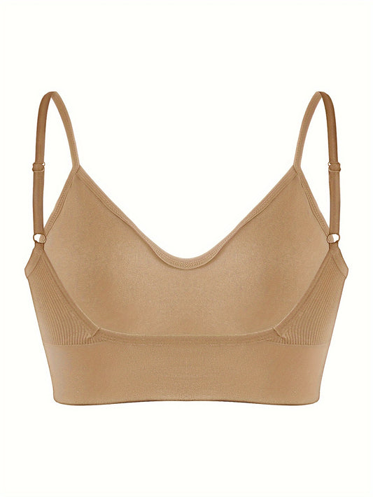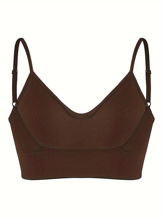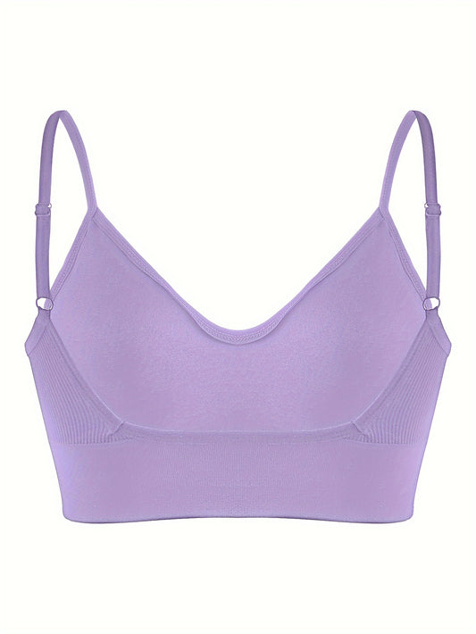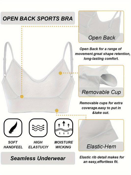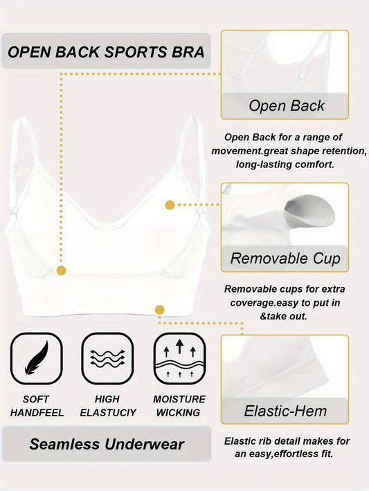 Solid Color Sports Running Bra, Seamless Fitness Top, Women's Activewear ( No Padded)