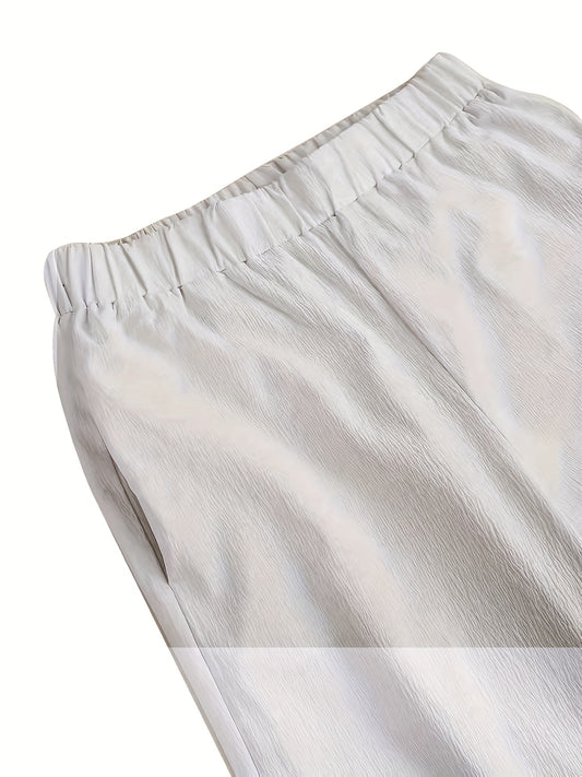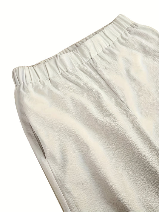 Solid Crew Neck Textured Simple Blouse, Elegant Short Sleeve Blouse For Spring & Summer, Women's Clothing