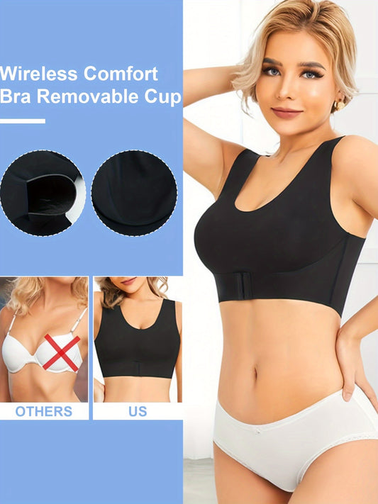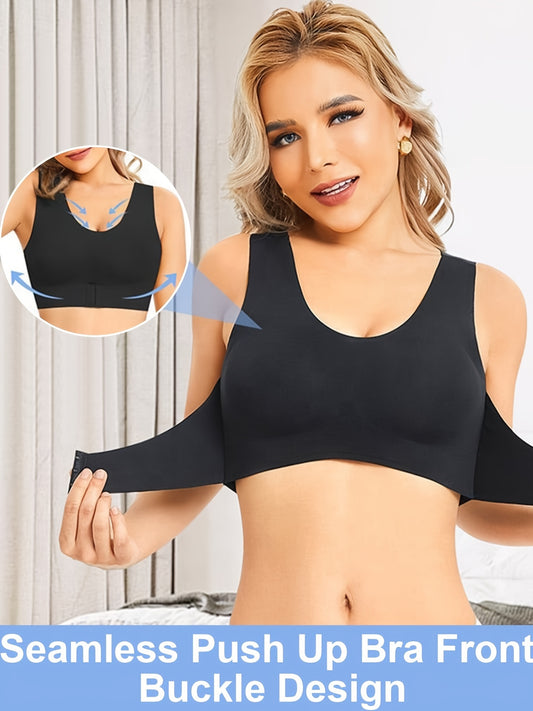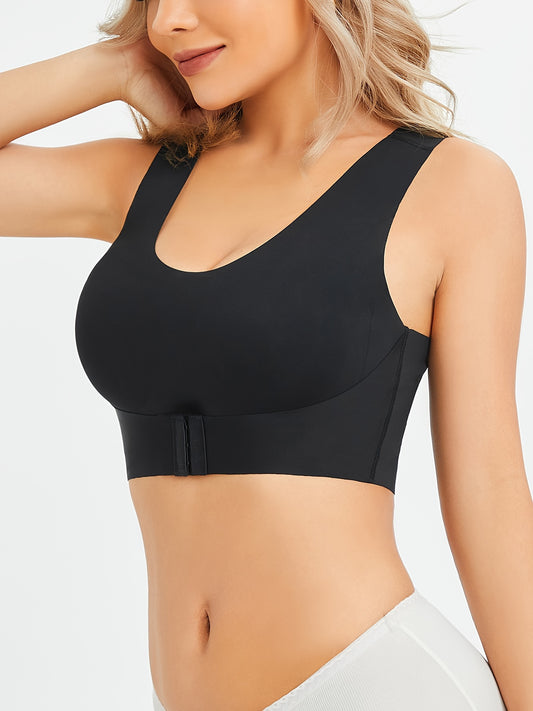 Solid Color Seamless Sports Bra, Push Up Posture Correction Running Yoga Bra, Women's Activewear